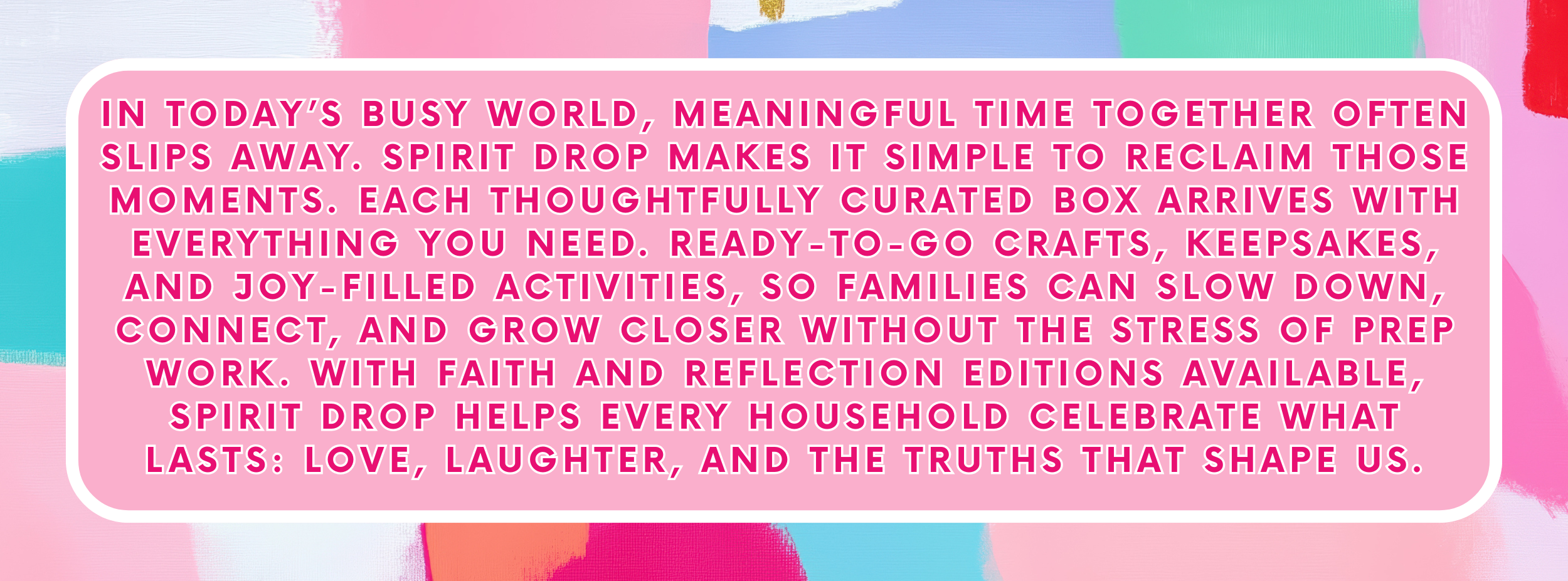I never set out to build a “religious” box. Spirit Drop began as a way to help families slow down, connect, and make memories. But the Lord reminded me that...