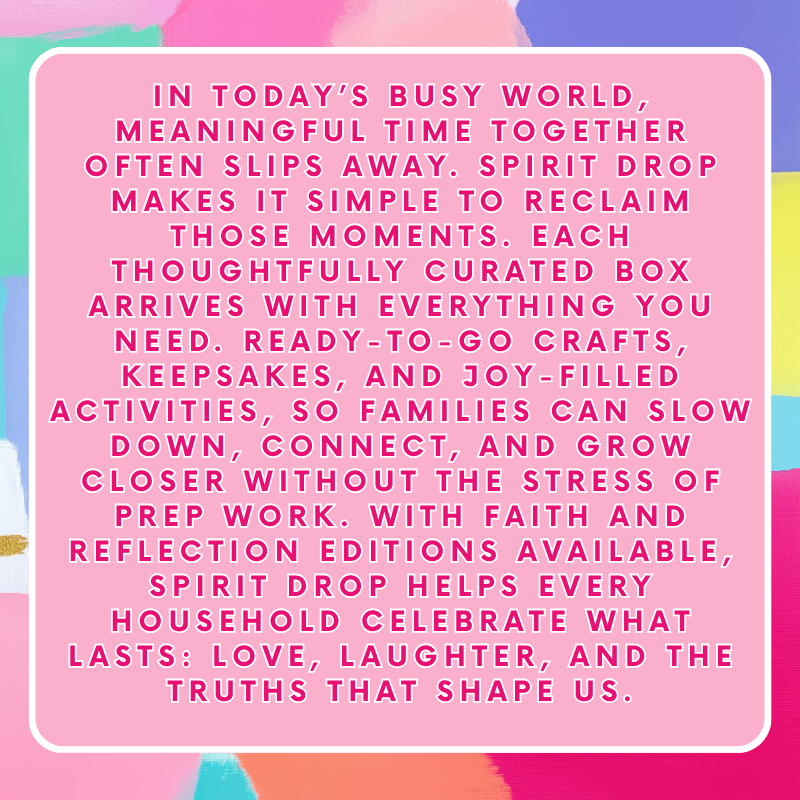 Your Spirit Drop arrives ready to spark connection, creativity, and meaningful memories. All beautifully wrapped and thoughtfully designed just for your family.